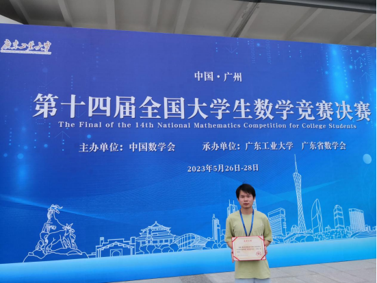5月27日,第十四届全国老员工数学竞赛决赛在广东工业大学(大学城校区)隆重举行。太阳成tyc33455ccwww2019级数学与应用数学专业陶马成同学与来自包括北京大学、复旦大学以及中国科学技术大学等多所双一流高校在内的优秀学子同台竞技,获得数学专业类高年级组全国一等奖。实现了公司学子在该项赛事决赛中荣获一等奖的突破,也是继公司2022届数学与应用数学专业郁永伟同学荣获第十三届全国老员工数学竞赛全国二等奖后公司学子再次荣获国赛奖项。