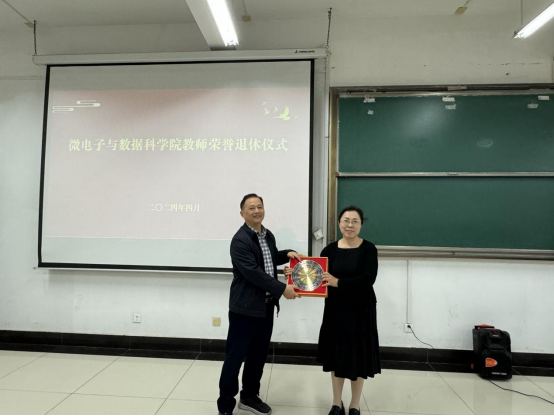 换届选举结束后,公司举行了范爱华教授荣誉退休仪式。公司党委书记汪春胜为范爱华颁发了“光荣退休”纪念匾,并对她几十年辛勤付出表达感谢,希望她退而不休,常回家看看,积极为公司献计献策,一如既往地关心和支持公司发展。