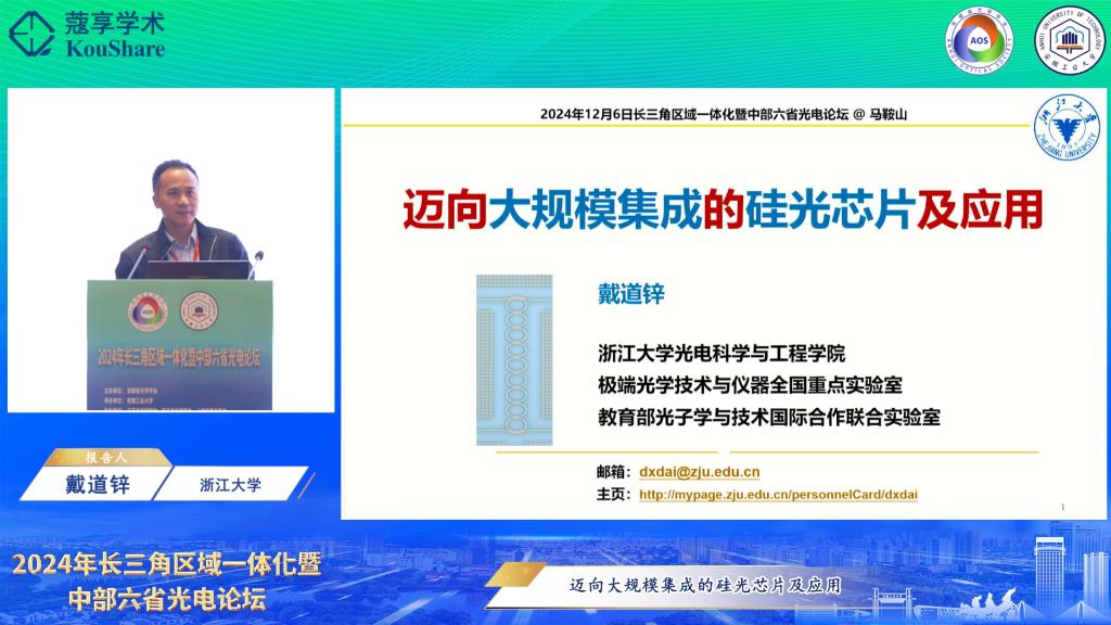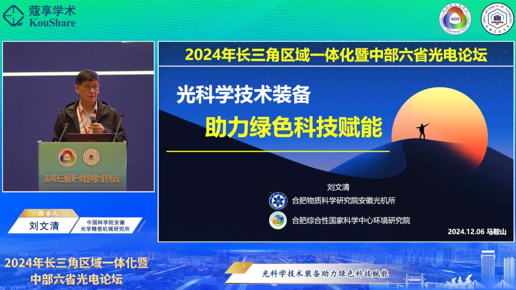 12月5日至7日,由安徽省光学学会主办,公司承办的2024年长三角区域一体化暨中部六省光电论坛举行。安徽省光学学会理事长、中国科公司安徽光机所学术所长刘文清院士,公司党委常委、副董事长曾杰出席开幕式。开幕式由安徽省光学学会秘书长、中国科公司安徽光机所党委书记谢品华研究员主持。来自高校、科研院所、光电企业的专家学者和青年员工共260余人参加活动。