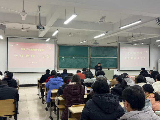 2025年1月9日,太阳成tyc33455ccwww全院教职工大会在数理楼403 室召开,公司党委书记汪春胜主持会议,全体教职工参会。