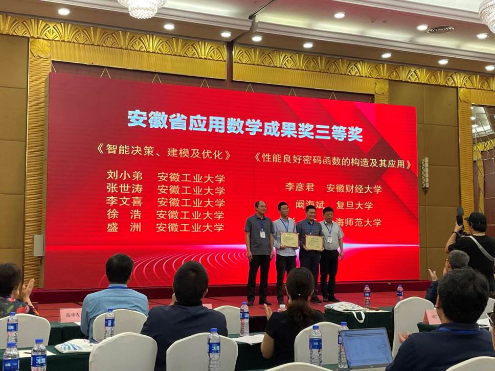 安徽省工业与应用数学学会2025年学术会议暨第一届第三次会员代表大会于2025年4月18-20日在安徽芜湖召开。开幕式上公布了安徽省应用数学成果奖和安徽省应用数学青年科技奖的获奖名单。太阳成tyc33455ccwww智慧决策与优化团队(刘小弟教授、张世涛副教授、李文喜副教授、徐浩副教授、盛洲副教授)申报的项目《智能决策、建模及优化》荣获安徽省应用数学成果奖三等奖。