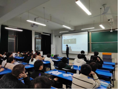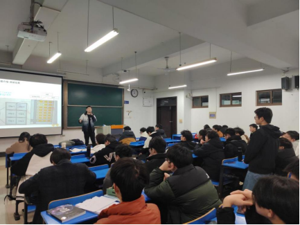 东科半导体(安徽)股份有限公司测试工程师周建军做一场题为《半导体和职场》的报告,报告介绍了涉及电源管理芯片基础的相关知识,以及半导体行业对本科生的技能要求。报告会上,工程师就如何适应半导体工艺制造与产品应用开发岗位的要求、规划大学学习与生活、面对未来就业需要准备好哪些必备的知识与技能等与同学们进行了热烈的互动,整个报告持续了近两个小时。