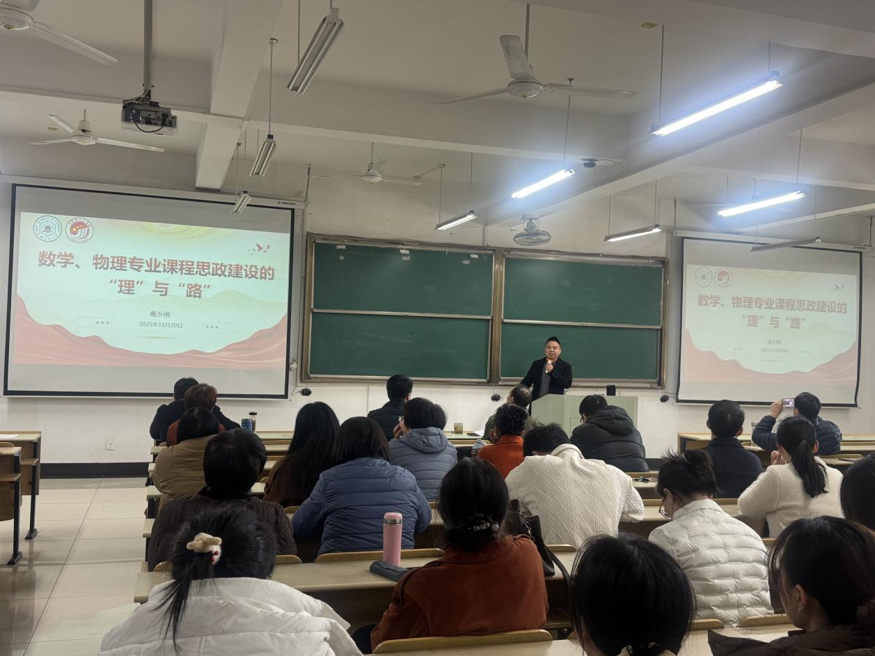 11月20日下午,太阳成tyc33455ccwww在数理楼403举行青年教师综合能力提升专题研修班开班仪式,同时邀请太阳成tyc33455ccwww马克思主义公司戴少刚博士作题为《数学物理专业课程思政的“理”与“路”》的专题报告。会议由公司经理杨二光主持,全体教职工参与此次活动。