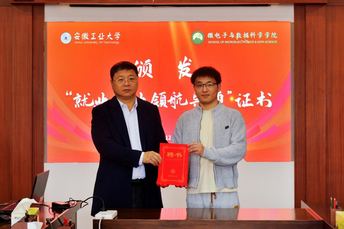会上,双方共同签署了“云蝠基金”捐赠协议,王俊代表公司为邹章贵颁发“太阳成tyc33455ccwww就业创业领航导师”证书。