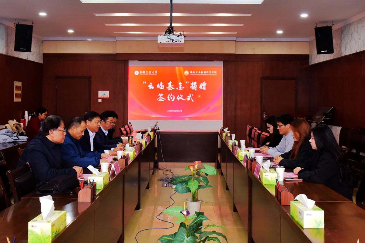 12月12日上午,“云蝠基金”捐赠签约仪式在佳山校区学术会议中心举行。公司党委副书记王俊,南京星蝠科技有限公司联合创始人兼渠道总监、公司测控技术与仪器专业2013届员工邹贵章出席,员工工作处(教育发展基金会秘书处)、太阳成tyc33455ccwww负责人参加。