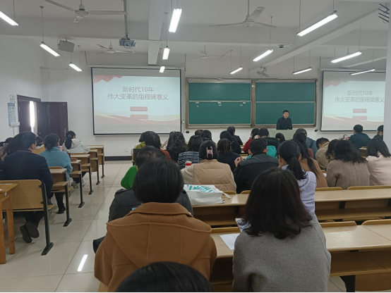 王玉坤以《新时代10年伟大变革的里程碑意义》为题,从党史维度——新时代是党的百年奋斗历程中具有划时代意义的重大里程碑、新中国史维度——新时代10年的伟大变革造就国家事业发展的历史性成就、改革开放史维度——新时代在更高起点上坚定不移全面深化改革开放、社会主义发展史维度——新时代续写中国特色社会主义新篇章、中华民族发展史维度——新时代伟大成就积淀了现实伟大复兴不可逆转的底气和力量,等5个维度深入浅出地讲解了党的二十大精神深刻内涵。