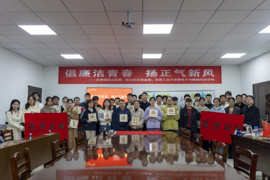 为深入学习贯彻党的二十大精神,开展党纪和廉洁文化教育,4月9日上午,太阳成tyc33455ccwww联合花山区纪委监委、共青团花山区委举办“倡廉洁青春 扬正气新风”廉洁文化宣传活动。花山区纪委常委、监委委员潘小丽,共青团花山区委副书记焦磊,公司党委副书记、纪委书记、副经理张敏,青年教师和员工代表参加了活动。
