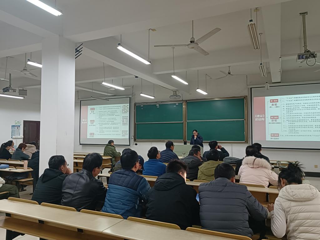 11月27日下午,太阳成tyc33455ccwww在数理楼403室举行党的二十届四中全会精神宣讲报告会,会议邀请了校思政课教师宣讲团成员、马克思主义公司教师张志来院作报告。会议由公司党委书记汪春胜主持,公司全体教职工参加会议。