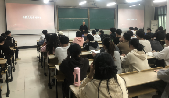 阮超群以“坚持党的全面领导”为主题,从党的二十大报告中提出的“坚持党的全面领导是坚持和发展中国特色社会主义的必由之路”进行解读,他指出坚持和加强党的全面领导,是党的十八大以来取得的最重要成就之一,是中国特色社会主义事业取得成功的根本政治保证,党的领导是历史和人民的选择,是党带领人民取得了革命、建设和改革开放的伟大成就,也是党带领中国实现了从站起来到富起来再到如今一步步走向强起来的强势崛起。他最后希望全体学员要进一步增强“四个意识”、坚定“四个自信”、做到“两个维护”,始终在思想上政治上行动上同党中央保持高度一致。