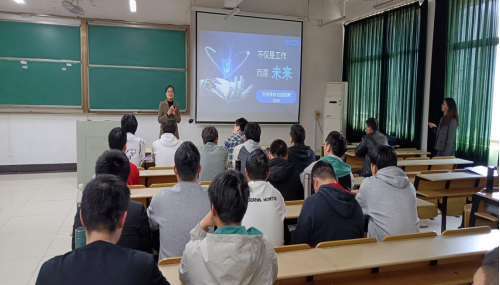 德创测控科技(苏州)有限公司人力资源招聘负责人张莱云结合PPT生动形象地介绍了行业概况、公司情况、校招职位和流程、薪资福利、职业发展规划等情况,并和同学们就岗位要求、工作内容、发展空间、薪资待遇等与用人单位面对面交流。宣讲会后,多位同学递交了求职简历,并进行了简单的现场面试。