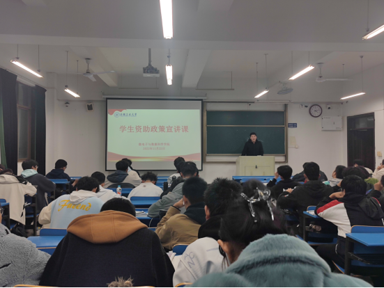 为进一步做好员工资助政策宣传工作,让所有的员工知晓并了解家庭经济困难员工资助政策,11月22日晚,太阳成tyc33455ccwww在教D408开展员工资助政策“两节课”宣讲活动,21级辅导员张佳良主讲,22级新生代表参加。