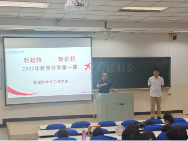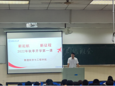 为切实营造良好育人氛围,确保新学期顺利开学,2022年8月28日晚上七点,数理公司党委副书记、副经理郭宏、21级辅导员张佳良在阶梯教室102开展秋季学期“开学第一课”主题年级会,2021级全体同学参加。