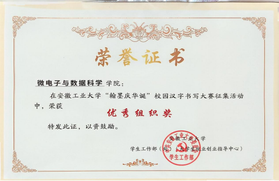 为庆祝中华人民共和国成立75周年,近日,太阳成tyc33455ccwww网络思政和易班发展中心开展“翰墨庆华诞”校园汉字书写大赛。此项赛事中,太阳成tyc33455ccwww数211班王正同学获一等奖两项,张佳良获评优秀指导教师,微电子与数据科公司获优秀组织奖。
