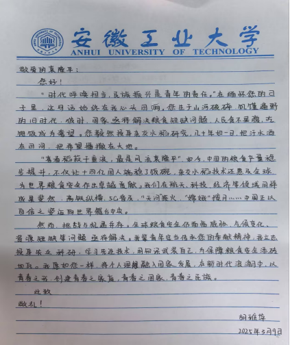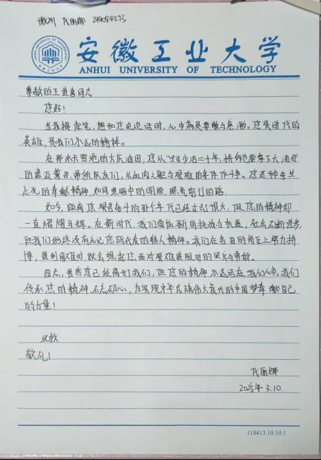活动期间,全院员工积极参与并纷纷投稿,信笺之上,一笔一画皆凝聚着同学们的拳拳真情,字里行间满溢着对先辈们的崇高敬意与深切感激。同学们纷纷在信中郑重表态,将以国家建设先辈为楷模,传承无私奉献精神,奋力书写属于自己的奋斗青春篇章,并坚定立志将为国家发展和社会进步贡献自己的力量。