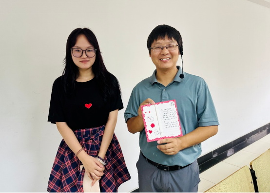 课堂上,同学们将亲手制作的贺卡郑重地递到老师手中,并附上一个温暖的拥抱或深深的鞠躬礼。这份不期而至的小惊喜,联结着师生的温情。数据科学与大数据技术专业系主任杨辉老师摩挲着精致的贺卡,爱不释手,“收到贺卡的那一刻,惊喜又温暖!看到孩子们懂得感恩、不断成长,就是我们作为老师最好的回报。”辅导员张佳良表示:“一封手写贺卡不仅是传统文化的传承,更能让员工学会表达感恩、懂得尊重。我们希望通过这样的活动,构建更有温度的师生关系,落实立德树人根本任务。”